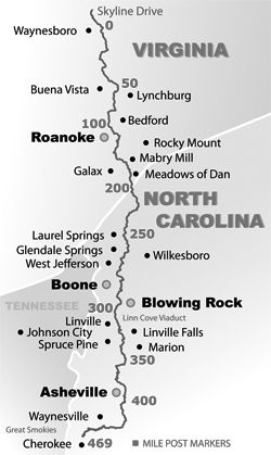 అలా ఇంకా దూరం వెళితే షుమారు గంట, బ్లూరిడ్జ్ పార్క్ వే అనే ఘాటు రోడ్డు, 469 మైళ్ళ రోడ్ ఇది, కొండల మీదుగా, రోనోకే, బూనే , ఆష్విల్లి దాటి చెరోకీ దగ్గర అంతము అవుతుంది, నార్త్ కెరోలినా రాష్ట్రములో. అలా రోనోకే(Roanoke, va) అనే ఊరు దాకా కొంతమంది వెళతారు. కారు కు మాత్రమే ఫీజ్, అంటే ఐదు మంది ఉన్నా ఒక కారు లెక్కే. జాగ్రత్తగా వెళ్ళాలి.